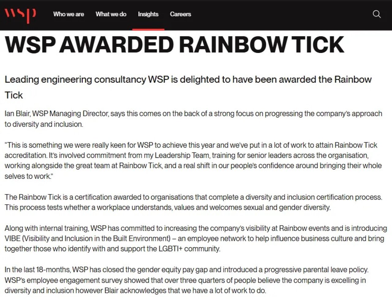 WSP New Zealand was New Zealand’s former Ministry of Works. But it’s come a long way since then. It now has the Rainbow Tick.