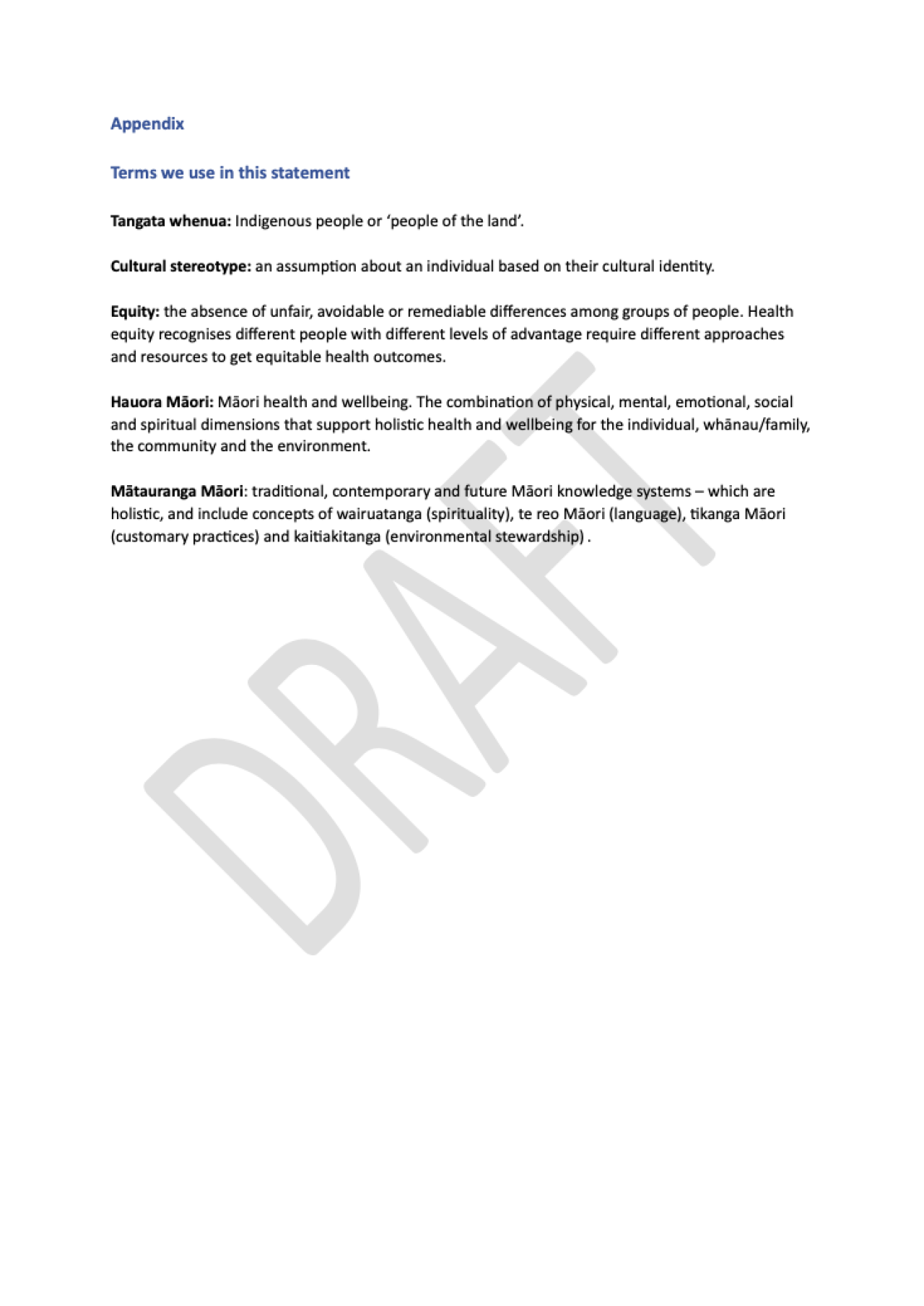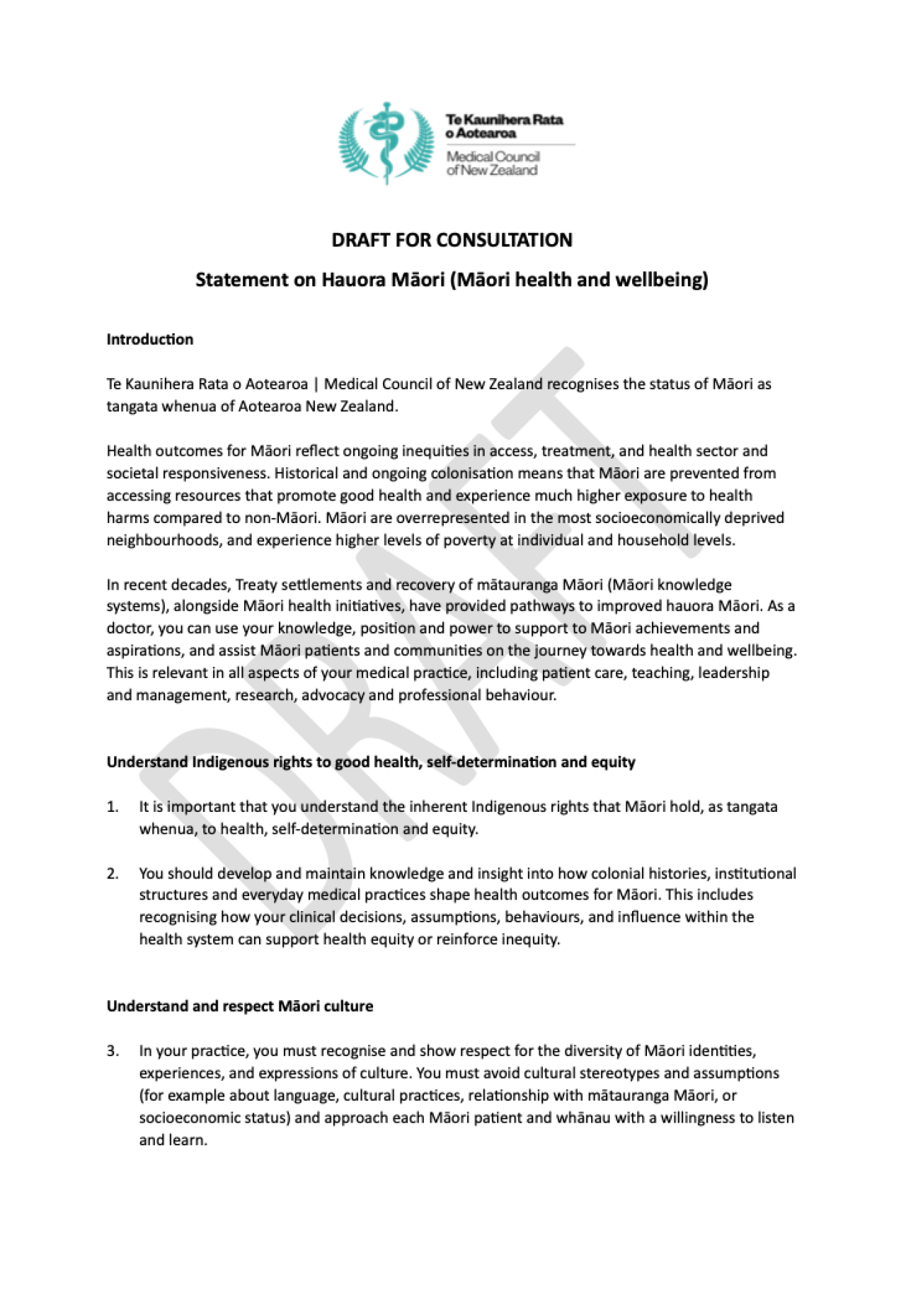 DRAFT FOR CONSULTATION - Statement on Hauora Māori (Māori health and wellbeing)